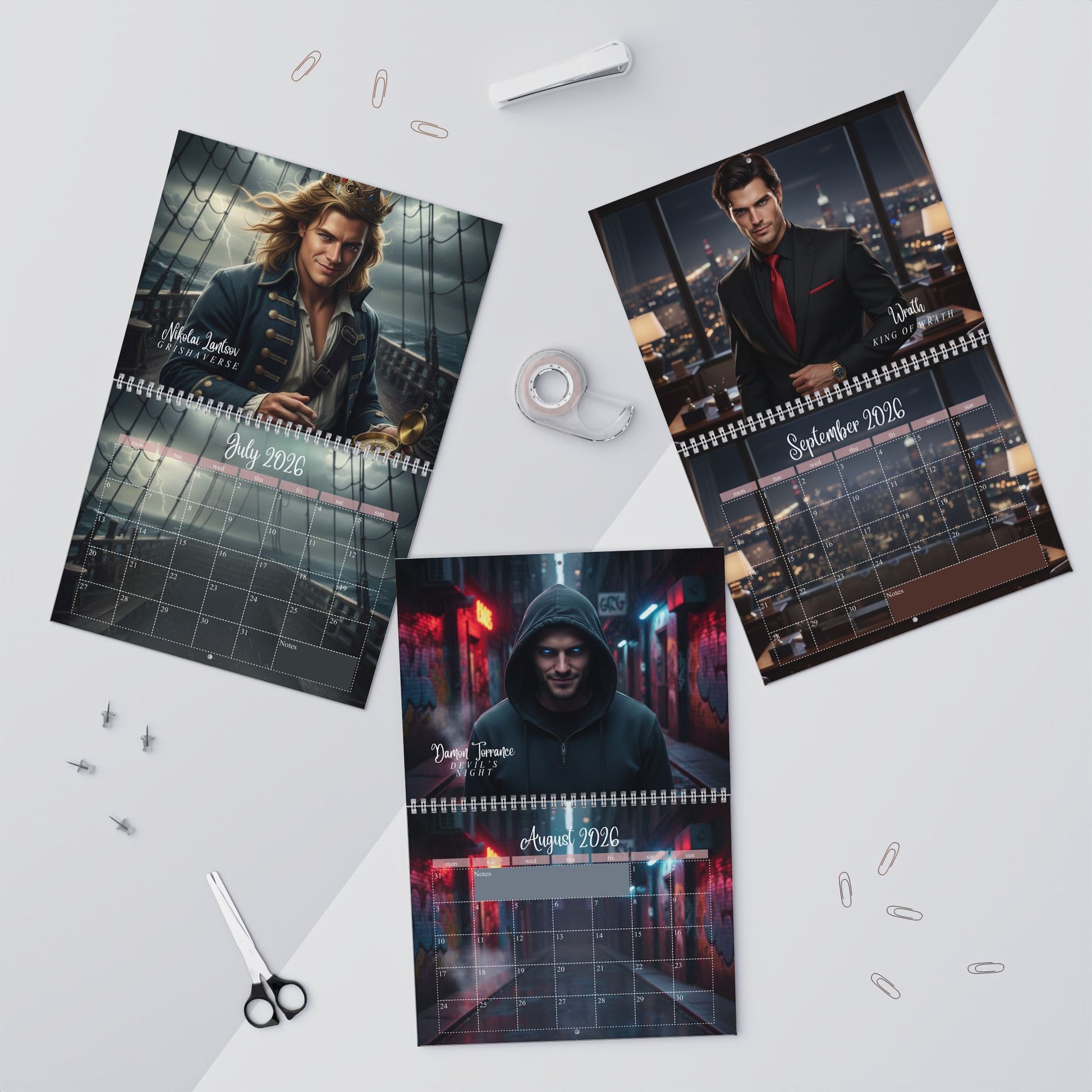 This customizable wall calendar gives you space to make it uniquely yours—add notes, decorate the grid, track reading goals, plan TBR lists, or simply admire the men who make your heart race. Available in two sizes (11" x 8.5" and 14" x 11.5"), it’s designed to fit beautifully in your office, reading nook, bedroom, or library wall.
