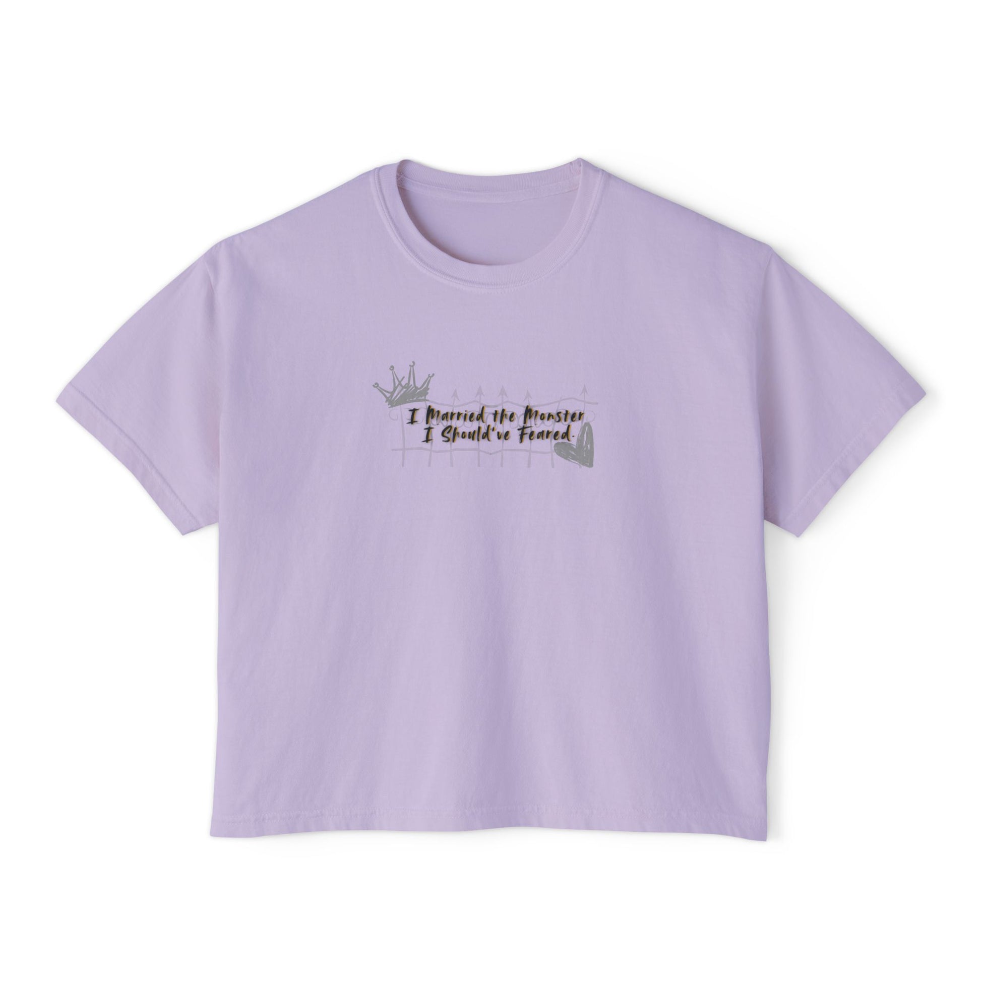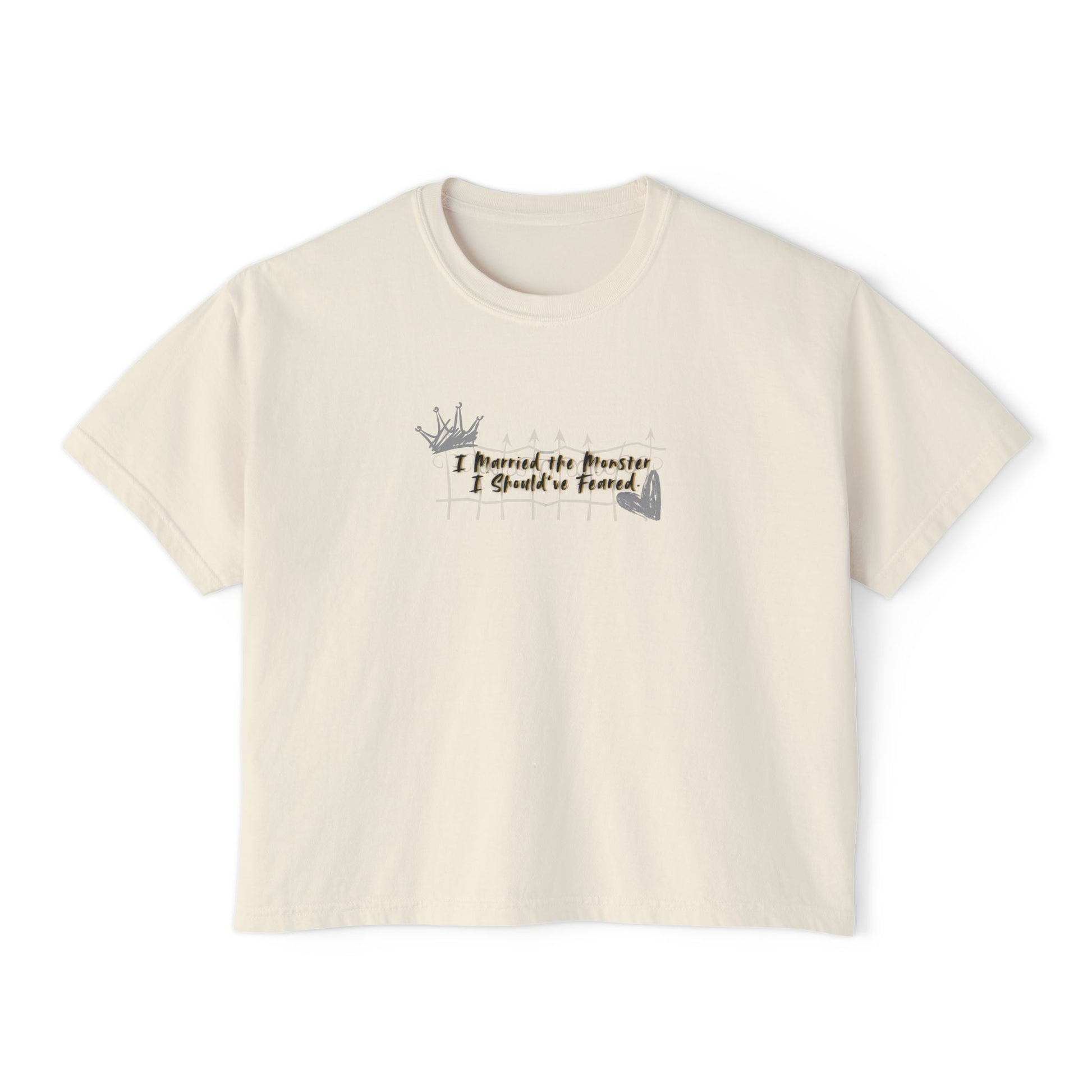 Women's Boxy Tee - Casual Graphic Shirt | 'I Married the Monster I Should've Feared' King of Battle and Blood